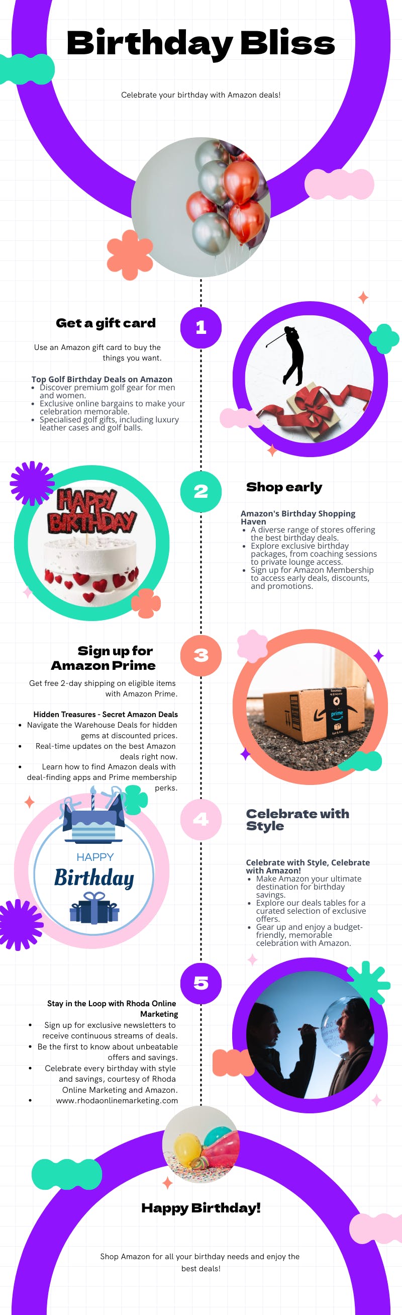 In conclusion, for a continuous stream of exclusive deals and savings, sign up for Rhoda Online Marketing's newsletters. Amazon transcends being a mere marketplace; it emerges as a birthday shopping haven. Whether you seek top golf birthday deals or exclusive online bargains, Amazon ensures your celebrations are not just memorable but also budget-friendly. So, don't miss out—gear up, explore the tables, and make Amazon your ultimate destination for birthday savings. Celebrate with style, celebrate with Amazon, and stay in the loop for unbeatable deals through Rhoda Online Marketing's exclusive newsletters.