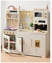 For $219.99, the Tiny Land Trendy Black Style Play Kitchen promises hours of imaginative play for your budding chefs. Crafted with meticulous detail, this deluxe play kitchen boasts an opening oven door, clickable knobs, and a hyper-realistic faucet. Made from high-quality, non-toxic materials, safety is a top priority with Tiny Land. Watch as your child whips up imaginary feasts and explores the culinary world through the magic of play.