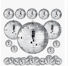 Sparkly tablecloths, gold confetti balloons, and shimmering disco balls set the stage for an elegant affair.